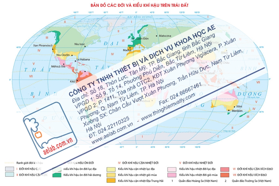 Bản đồ các đới và kiểu khí hậu trên Trái Đất được sản xuất theo Thông tư số 39/2021/TT-BGDĐT ngày 30/12/2021 của Bộ trưởng Bộ Giáo dục và Đào tạo.