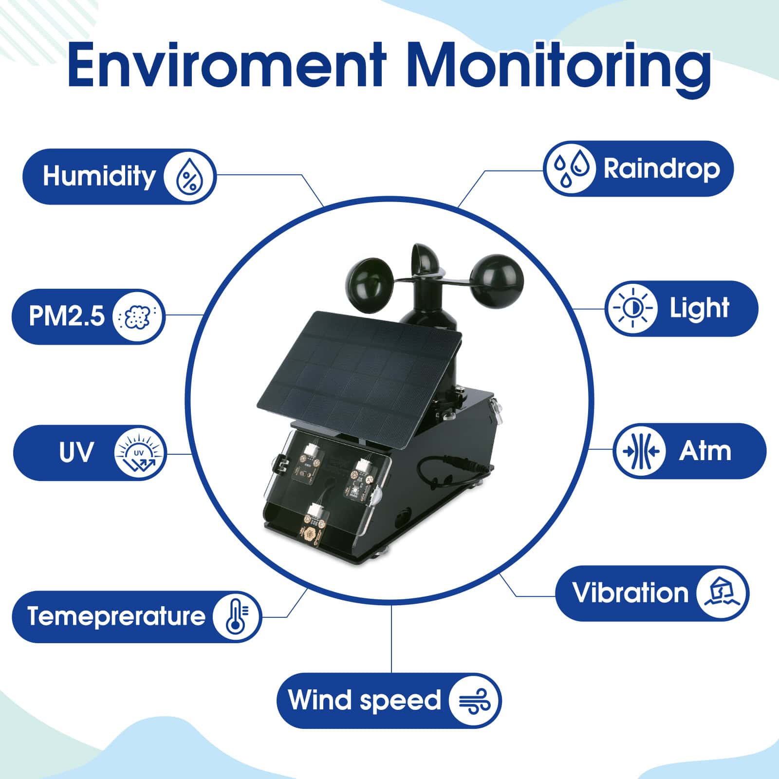 Với thiết kế tích hợp nhiều cảm biến, bộ kit cho phép đo và theo dõi nhiều thông số môi trường như nhiệt độ, độ ẩm, tốc độ gió, tia UV và chất lượng không khí, giúp người học hiểu rõ cách các hệ thống IoT thu thập và xử lý dữ liệu trong thực tế.
