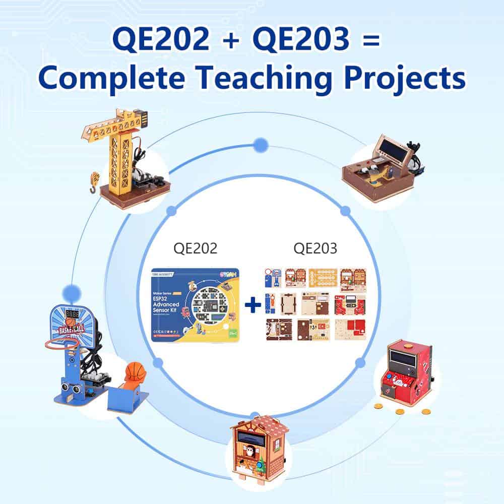 Combo QE202 + QE203 là giải pháp học STEM nâng cao đến từ ACEBOTT, giúp người học phát triển toàn diện từ thu thập dữ liệu (Sensors) → xử lý → ứng dụng thông minh (AI/IoT).