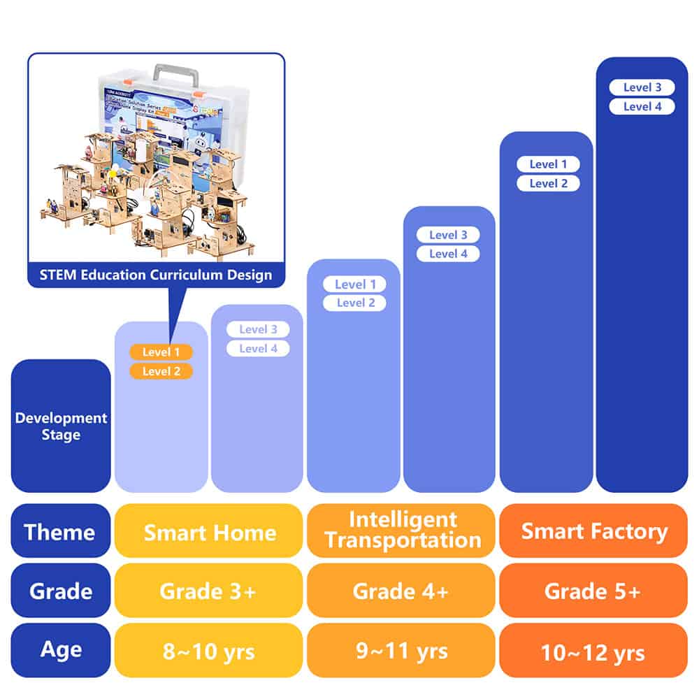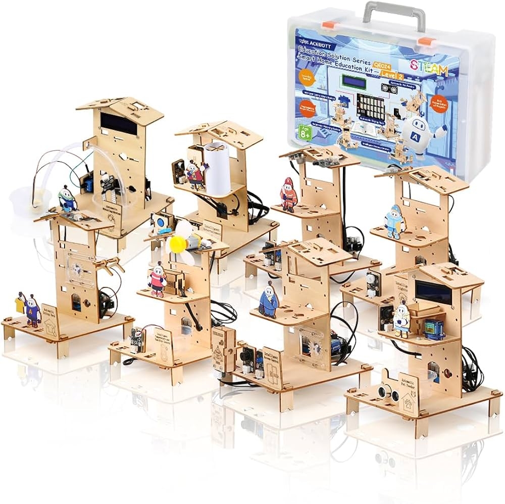 Bộ kit mô phỏng một hệ sinh thái nhà thông minh hoàn chỉnh với 8 mô hình hoạt động đồng thời, kết hợp bảng hiển thị trung tâm (Ultimate Display), giúp người học quan sát, điều khiển và phân tích toàn bộ hệ thống một cách trực quan. Đây là phiên bản nâng cao (Lớp 1), phù hợp cho học sinh đã có nền tảng STEM và muốn phát triển lên mức chuyên sâu hơn.