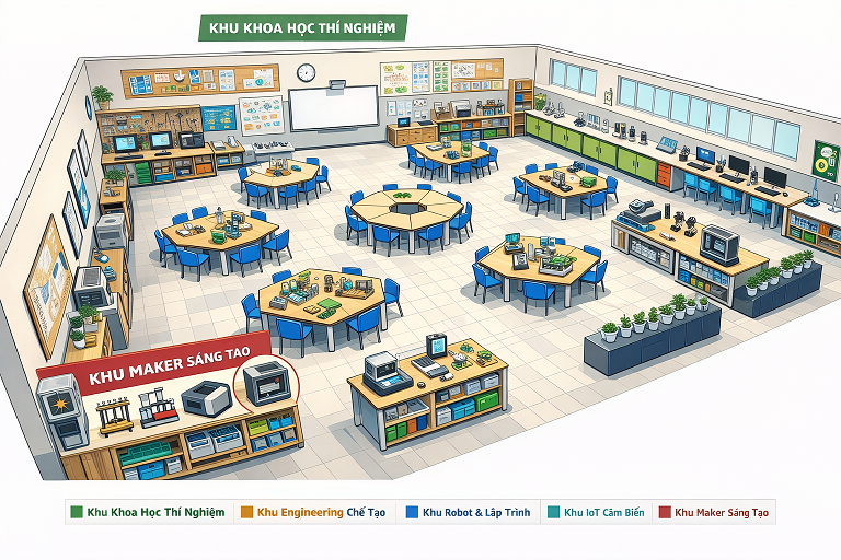 a. Khu Khoa học - thí nghiệm và quan sát - Bao gồm: bộ thí nghiệm khoa học, cảm biến