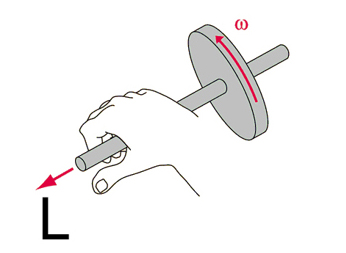 L và w là hai đại lượng vector, cùng phương cùng hướng theo quy tắc bàn tay phải như hình dưới.