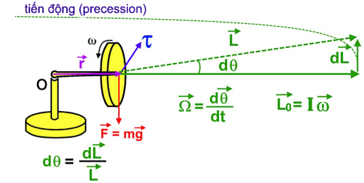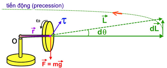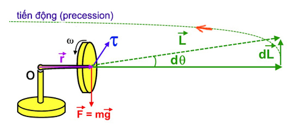 Vì đĩa quay nên nó tạo nên mô men động lượng L., ở thời điểm ban đầu,