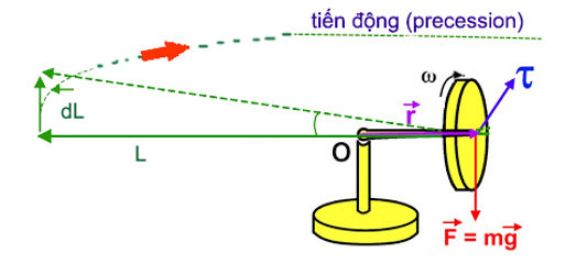 Chứng tỏ xuất hiện hiện tượng quay của gyroscope quanh trục O.