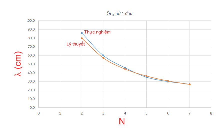 Dựa vào đó ta vẽ đồ thị so sánh giữa lý thuyết và thực nghiệm như sau: