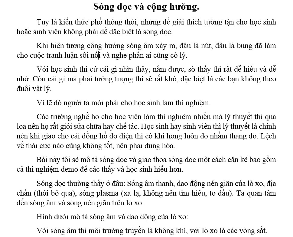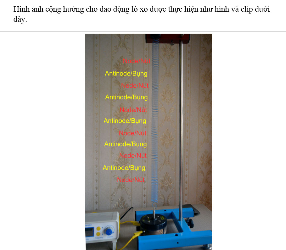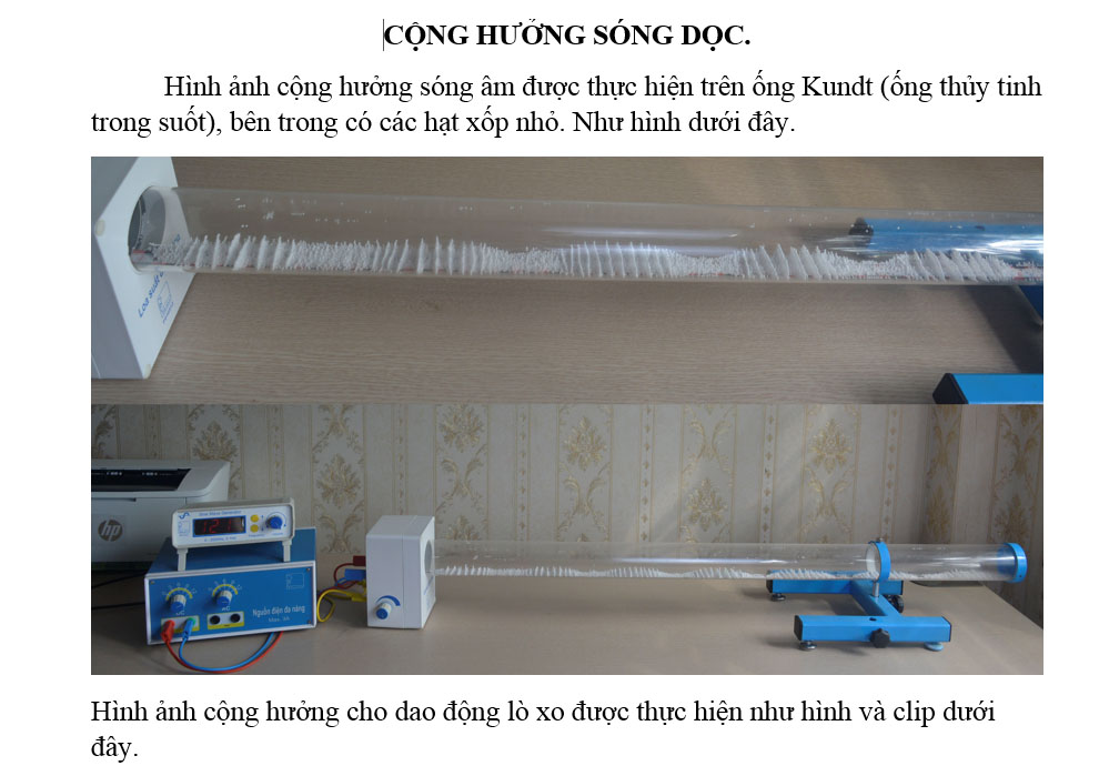 - Hiện tượng sóng dừng của sóng âm được biểu diễn một cách sinh động nhất. Học sinh có thể quan sát bằng mắt hiện tượng cộng hưởng sóng dừng