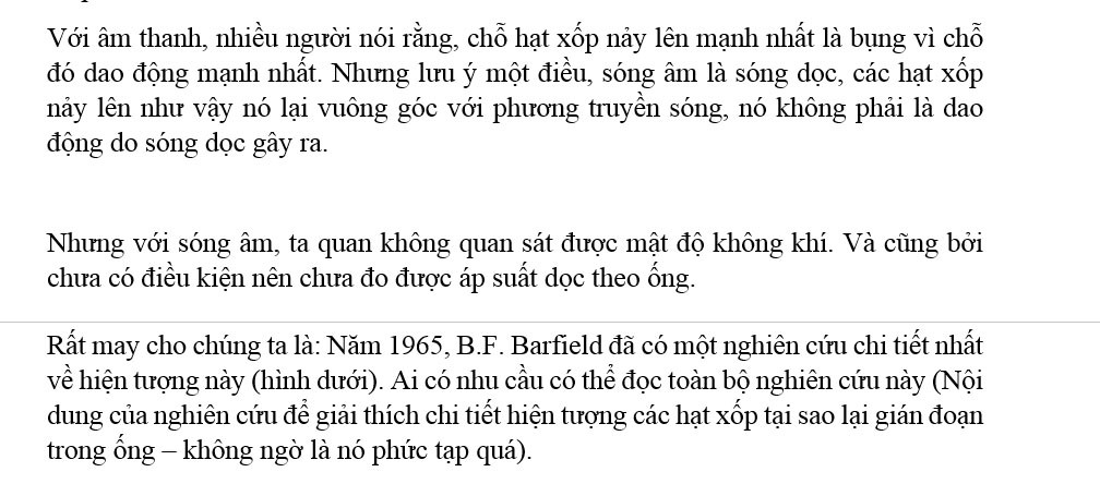 Barfield đã phát hiện ra là: Nút sóng là nơi tập trung các hạt xốp.