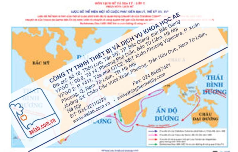 Lược đồ thể hiện một số cuộc phát kiến địa lý, thế kỷ XV, XVI (Tranh giấy) được sản xuất theo Thông tư số 38/2021/TT-BGDĐT ngày 30/12/2021 của Bộ trưởng Bộ Giáo dục và Đào tạo.