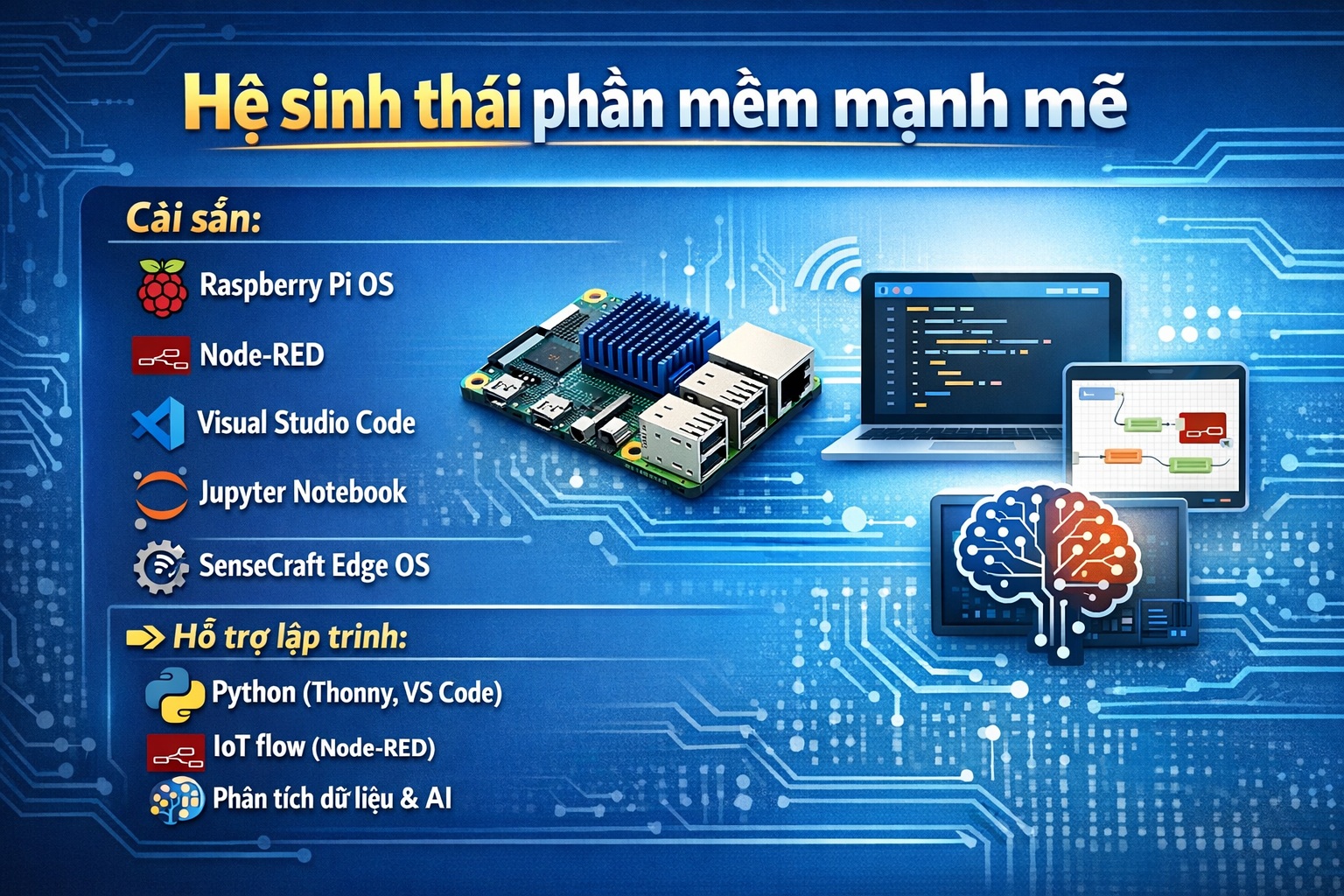 ✔️ Hỗ trợ đầy đủ AI, IoT, lập trình nhúng