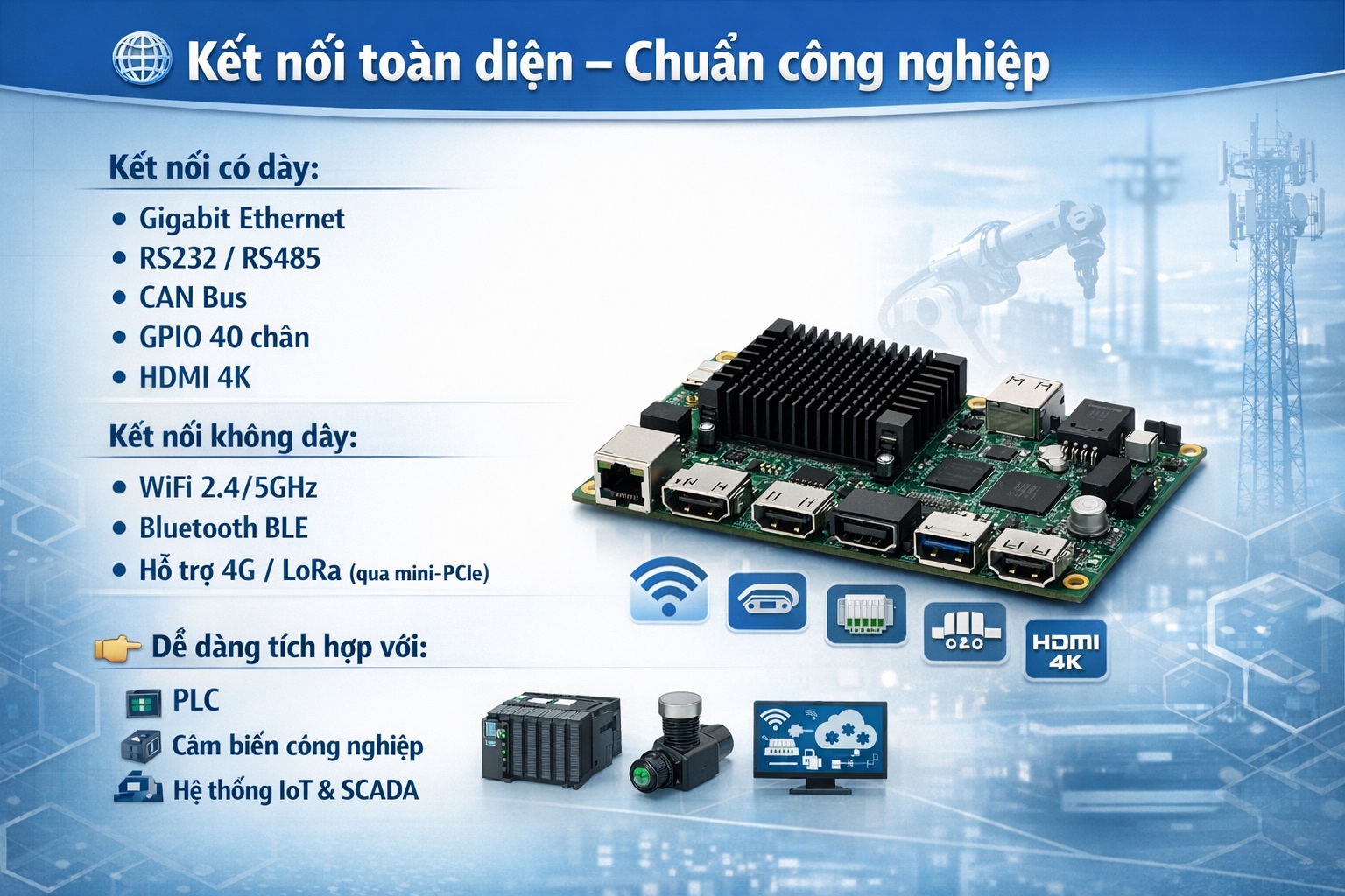 🌐 Kết nối toàn diện – Chuẩn công nghiệp