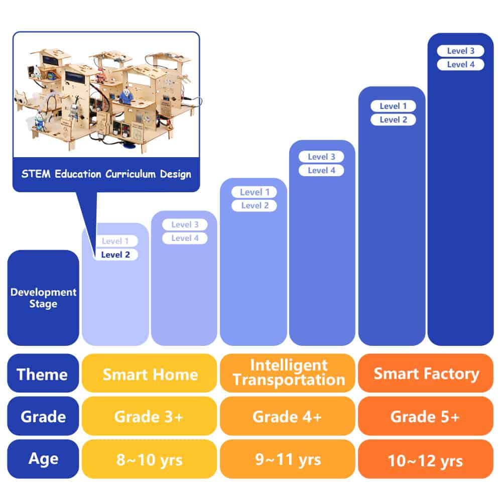 Bộ kit mô phỏng một hệ sinh thái nhà thông minh hoàn chỉnh với 5 mô hình ứng dụng thực tế, giúp người học hiểu rõ cách các thiết bị thông minh hoạt động, kết nối và tự động hóa trong đời sống. Đây là phiên bản nâng cao (Level 2), phù hợp cho học sinh đã có nền tảng STEM cơ bản và muốn phát triển lên mức chuyên sâu hơn.