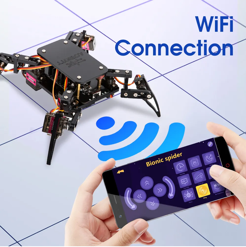 ACEBOTT QD020 Bionic Spider Robot Kit là bộ robot nhện bionic 4 chân được thiết kế cho giáo dục STEM và Robotics. Bộ kit sử dụng board ESP8266 Wi-Fi, cho phép người học lập trình và điều khiển robot thông qua nhiều nền tảng như Arduino IDE, ACECode hoặc Python.