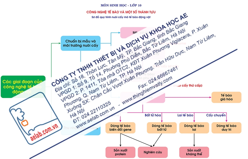 Sơ đổ mô tả các bước của quy trình nuôi cấy mô tế bào động vật