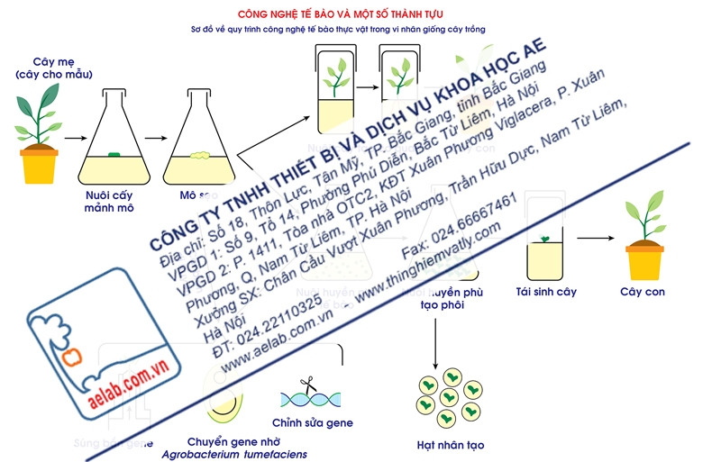 Sơ đồ mô tả quy trình của công nghệ tế bào thực vật trong vi nhân giống cây trồng
