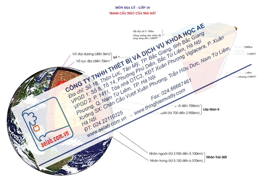 Tranh cấu trúc của Trái Đất được sản xuất theo Thông tư số 39/2021/TT-BGDĐT ngày 30/12/2021 của Bộ trưởng Bộ Giáo dục và Đào tạo.