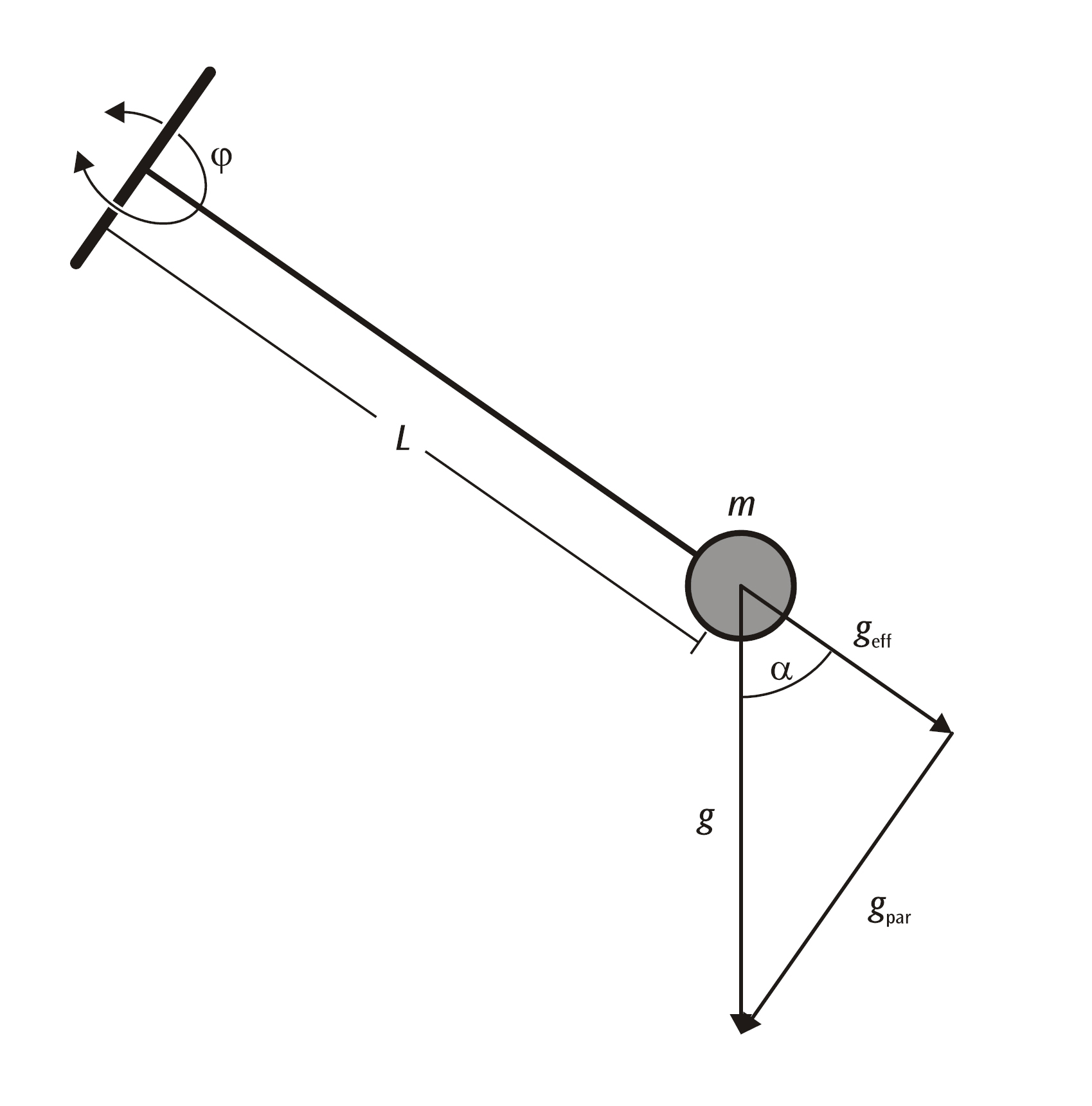 When the axis is tilted, the component of the gravitational acceleration g that is parallel to the axis gpar is rendered ineffective by the fact that the axis is fixed (see fig. below). The