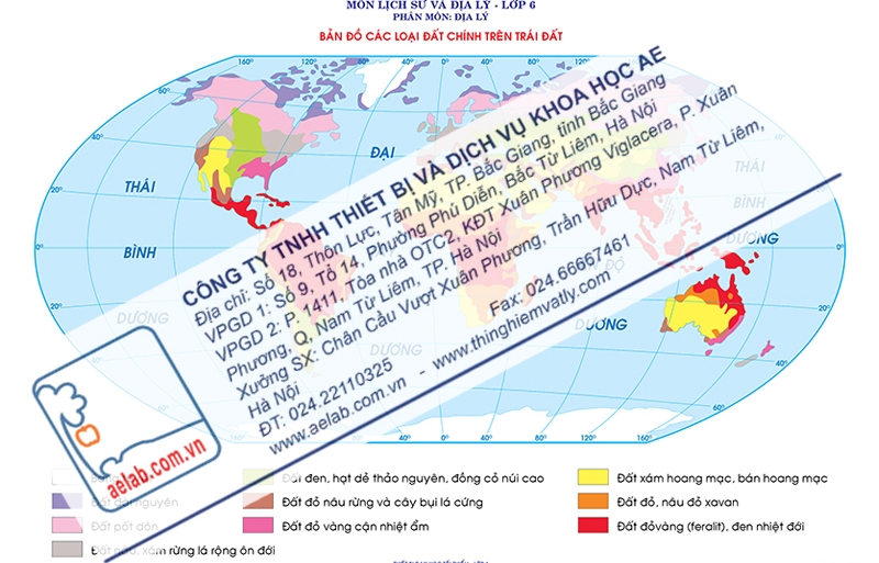 Bản đồ treo tường, thể hiện các loại đất chính của các đới cảnh quan thiên nhiên trên Trái Đất.