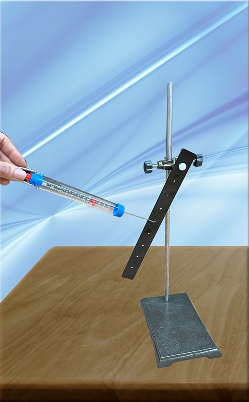 + Lực kế (TBDC); Thanh nhựa cứng, có lỗ móc lực kế cách đều nhau, dài tối thiểu 300 mm liên kết với giá có điểm tựa trục quay.