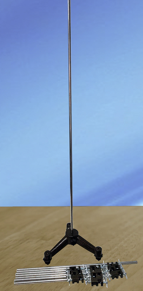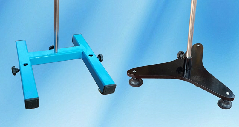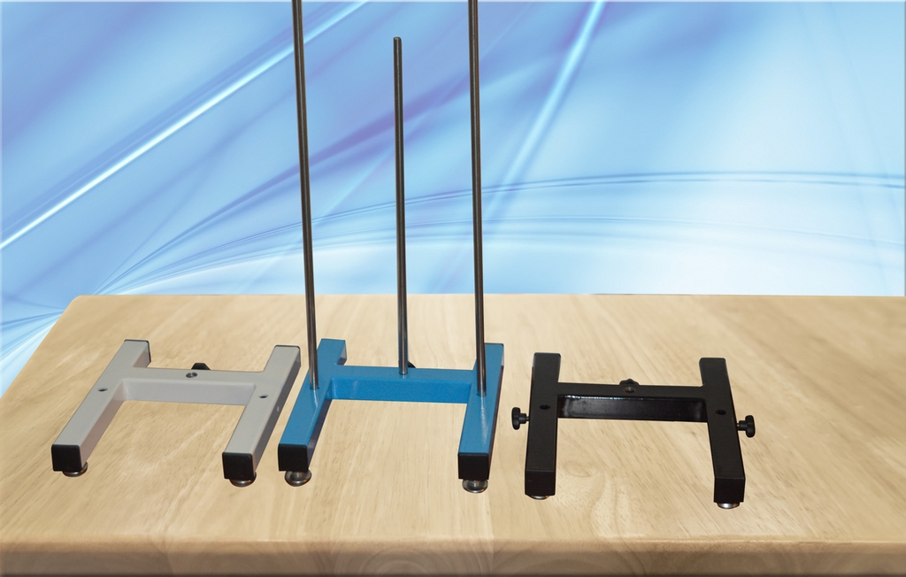 - Chân đế bằng kim loại, sơn tĩnh điện màu tối, khối lượng khoảng 2,5 kg, bền chắc, ổn định, đường kính lỗ 10mm và vít M6 thẳng góc với lỗ để giữ trục đường kính 10mm, có hệ vít chỉnh cân bằng.
