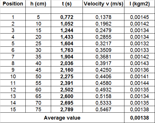 Từ phương trình (5) ta tính được moment quán tính I của bánh xe như sau: