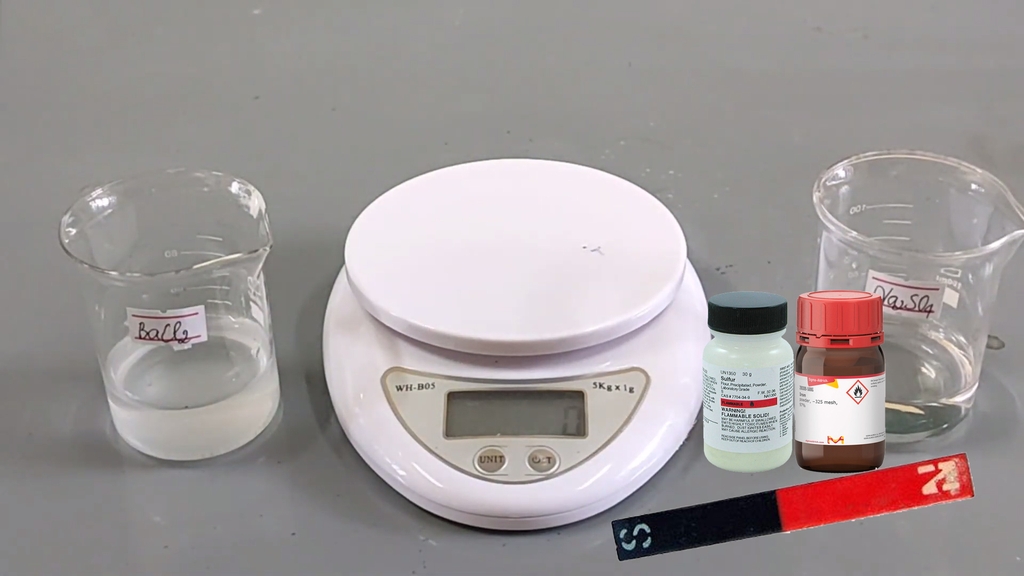 + Barichloride (BaCl2) dung dịch; Sodiumsulfate (Na2SO4) dung dịch; Bột lưu huỳnh (S); Bột sắt.