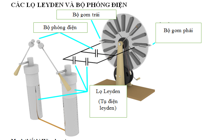 Máy phát tĩnh điện Wimshurst gồm có 3 bộ phận chính: