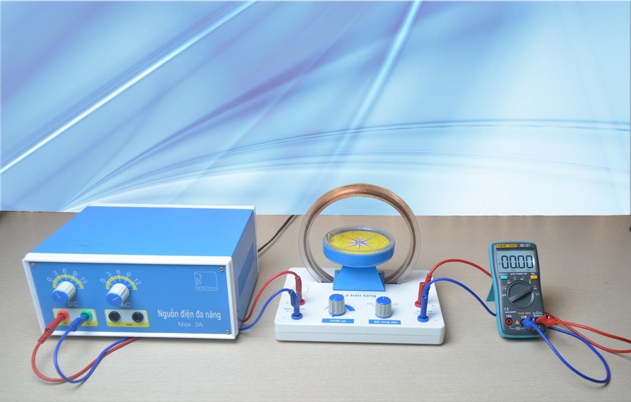 Bộ thí nghiệm này dùng để xác định hướng và độ lớn của từ trường trái đất theo phương ngang tại 1 điểm. Thành phần nằm ngang được xác định bằng la bàn tang, đo góc quay của kim la bàn khi ta đặt một từ trường ngoài vào cuộn dây, Từ đó tính được độ lớn của từ trường.