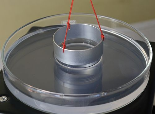 Có nhiều cách để đo lực căng này, chúng tôi sử dụng cách đo lực căng tác dụng lên 1 vòng kim loại được mài nhẵn.