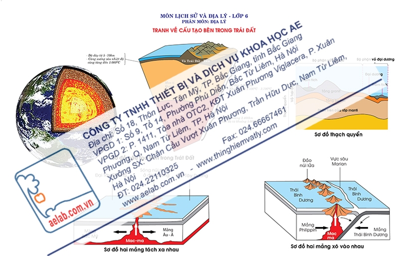 Cấu tạo bên trong Trái Đất (Tranh giấy) được sản xuất theo Thông tư số 38/2021/TT-BGDĐT ngày 30/12/2021 của Bộ trưởng Bộ Giáo dục và Đào tạo.