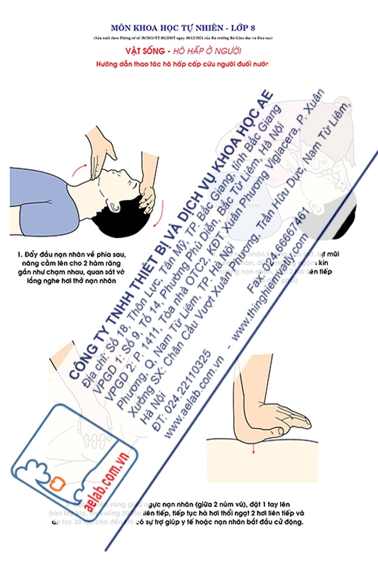 Hướng dẫn thao tác hô hấp nhân tạo, cấp cứu người đuối nước (Tranh giấy) được sản xuất theo Thông tư số 38/2021/TT-BGDĐT ngày 30/12/2021 của Bộ trưởng Bộ Giáo dục và Đào tạo.