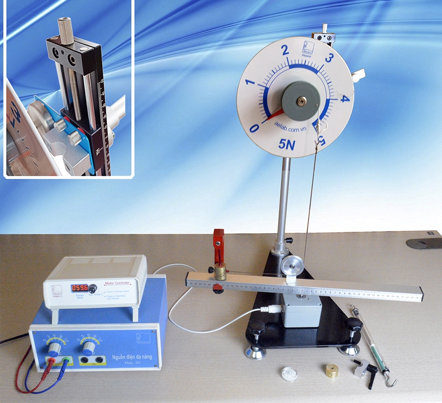 Bộ thí nghiệm khảo sát lực quán tính ly tâm được thiết kế hiện đại, có động cơ điều chỉnh được tốc độ.