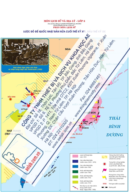Lược đồ đế quốc Nhật Bản nửa cuối thế kỉ XIX, đầu thế kỉ XX (Tranh giấy) được sản xuất theo Thông tư số 38/2021/TT-BGDĐT ngày 30/12/2021 của Bộ trưởng Bộ Giáo dục và Đào tạo.