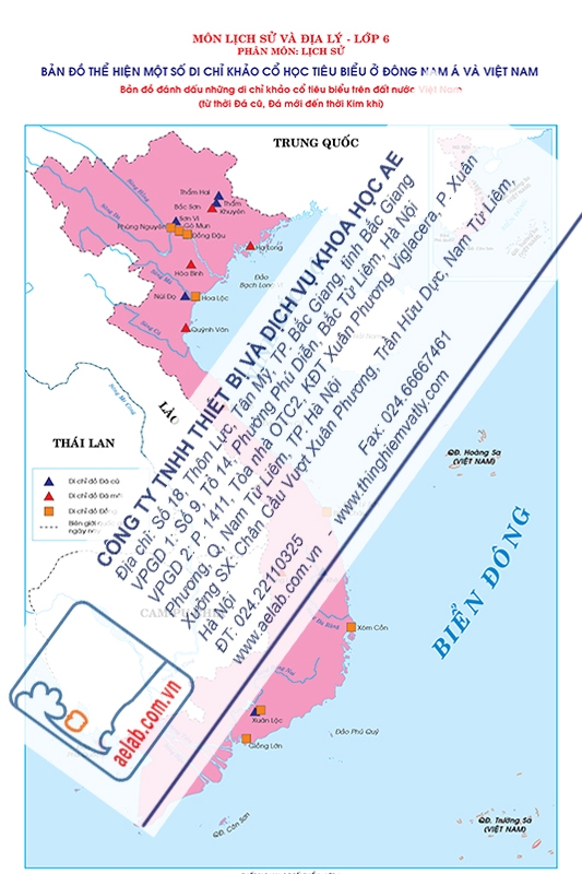 - 01 lược đồ đánh dấu những di chỉ khảo cổ học tiêu biểu trên đất nước Việt Nam (từ thời Đá cũ, Đá mái đến thời Kim khí);