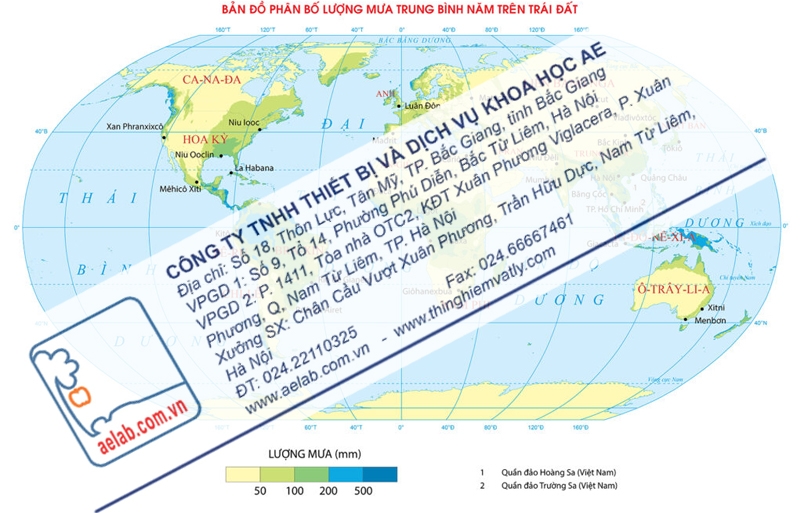 Lược đồ phân bố lượng mưa trung bình năm trên Trái Đất (Tranh giấy) được sản xuất theo Thông tư số 38/2021/TT-BGDĐT ngày 30/12/2021 của Bộ trưởng Bộ Giáo dục và Đào tạo.