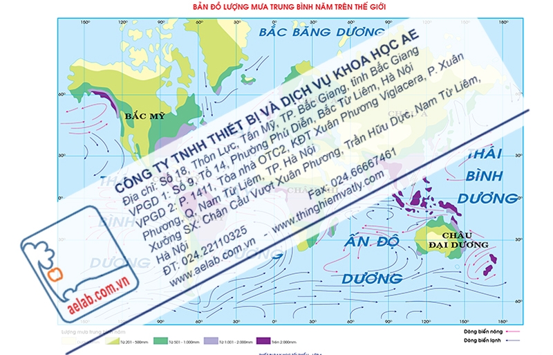 Lược đồ treo tường, thể hiện phân tầng màu phân bố nhiệt độ trung bình năm trên Trái Đất.