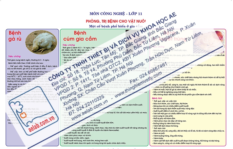 Tranh mô tả triệu chứng và bệnh tích một số bệnh phổ biến ở gia cầm: Bệnh gà rù, bệnh cúm gia cầm, bệnh tụ huyết trùng.