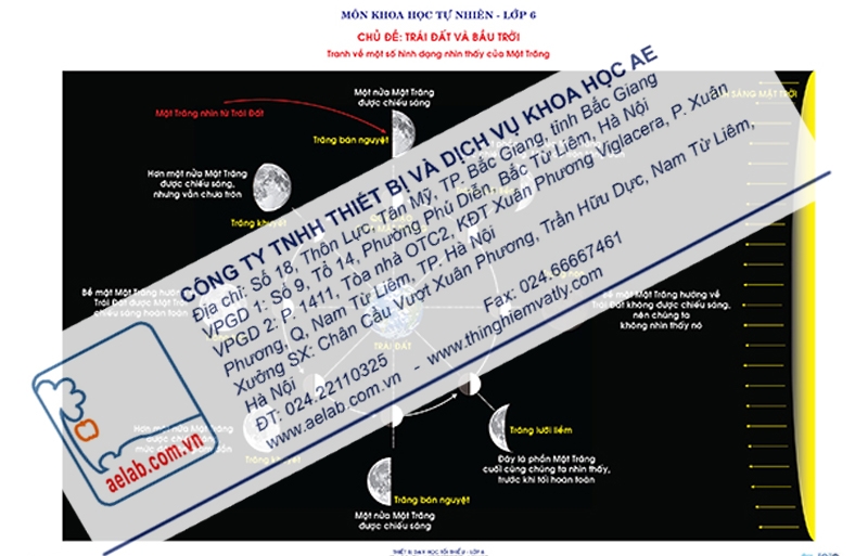 Một số hình dạng nhìn thấy của Mặt Trăng (Tranh giấy) được sản xuất theo Thông tư số 38/2021/TT-BGDĐT ngày 30/12/2021 của Bộ trưởng Bộ Giáo dục và Đào tạo.