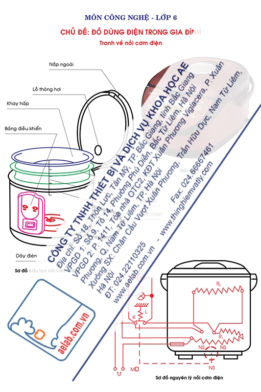 Yêu cầu nội dung: cấu tạo và sơ đồ khối thể hiện nguyên lí làm việc của nồi cơm điện đơn chức năng, kèm hình minh họa nồi đa chức năng.
