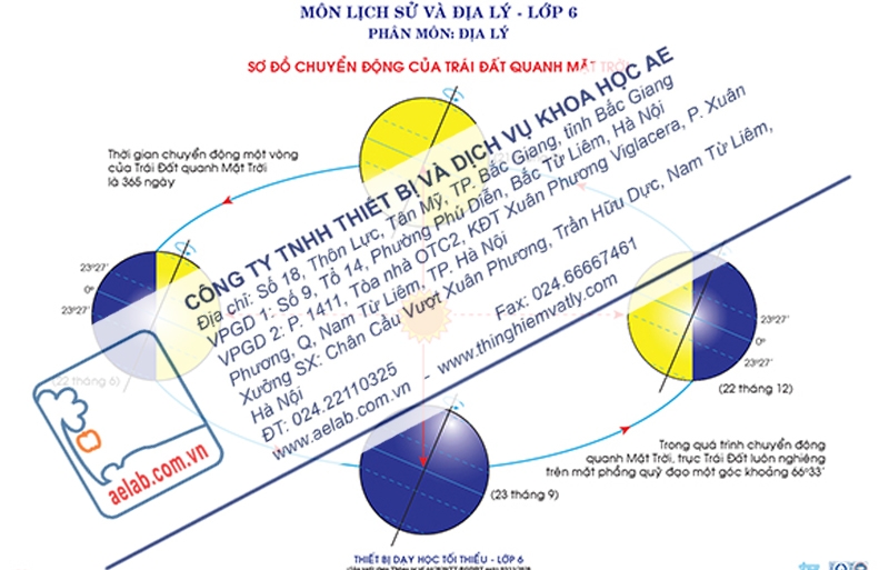 Sơ đồ chuyển động của Trái Đất quanh Mặt Trời (Tranh giấy) được sản xuất theo Thông tư số 38/2021/TT-BGDĐT ngày 30/12/2021 của Bộ trưởng Bộ Giáo dục và Đào tạo.