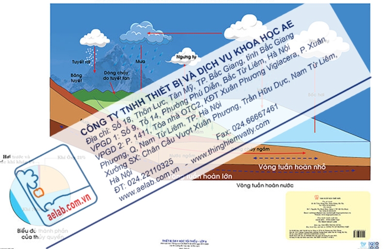 Sơ đồ vòng tuần hoàn lớn của nước (Tranh giấy) được sản xuất theo Thông tư số 38/2021/TT-BGDĐT ngày 30/12/2021 của Bộ trưởng Bộ Giáo dục và Đào tạo.
