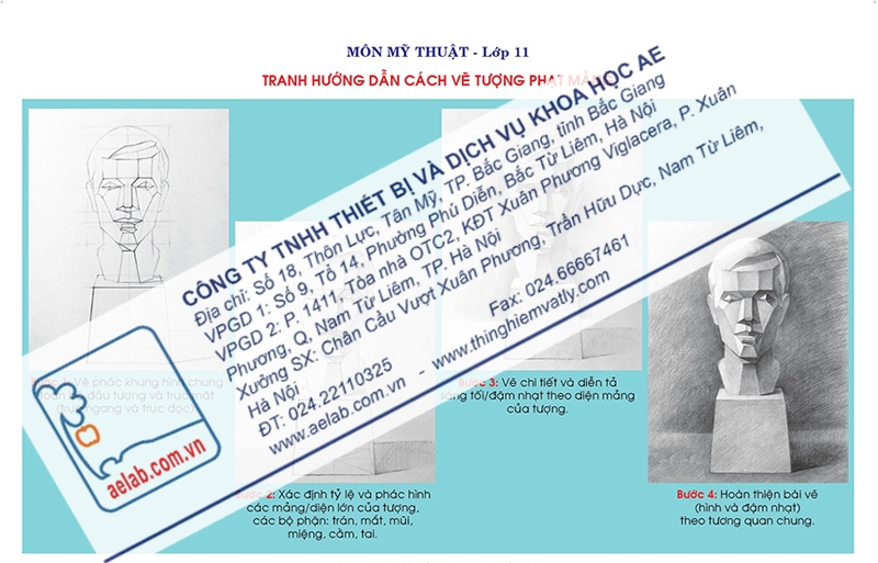 - 01 tờ tranh hướng dẫn các bước vẽ tượng phạt mảng bằng chì. Gồm các bước:
